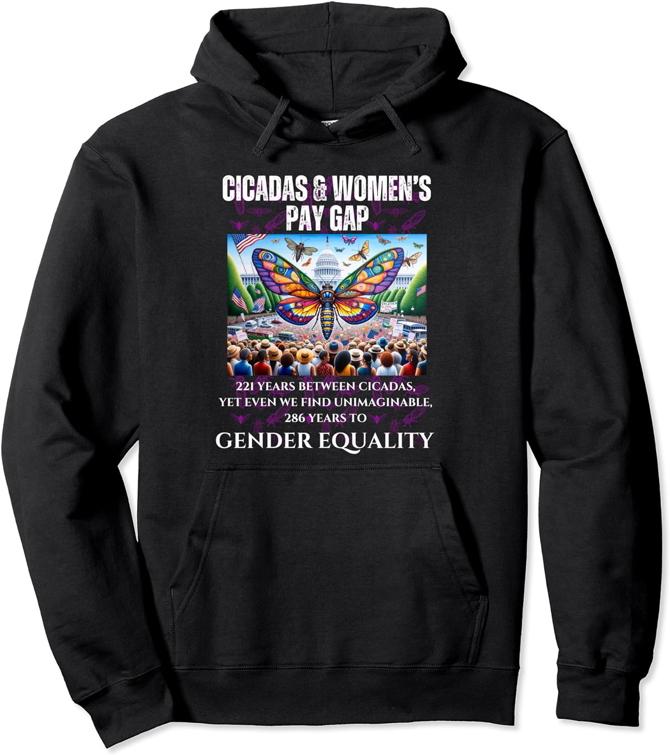 Stand up for women’s pay justice and economic equality with our Cicada Design Featuring striking and colorful cicada imagery, bringing attention to the persistent gender pay gap through a powerful quote. Despite making up nearly half the workforce, women still earn significantly less than men, with the gap widening for women of color. This design is a bold statement at any rally, event, or everyday , calling for action to close the wage gap. Women hold only 8.2% of Fortune 500 CEO roles, highlighting the need for continued advocacy and support for women empowerment and gender equality. International women’s organizations predict it will take more than 286 years to achieve economic equality for women. Show your support for women’s rights, empower women, and help amplify the message that the time for change is now.