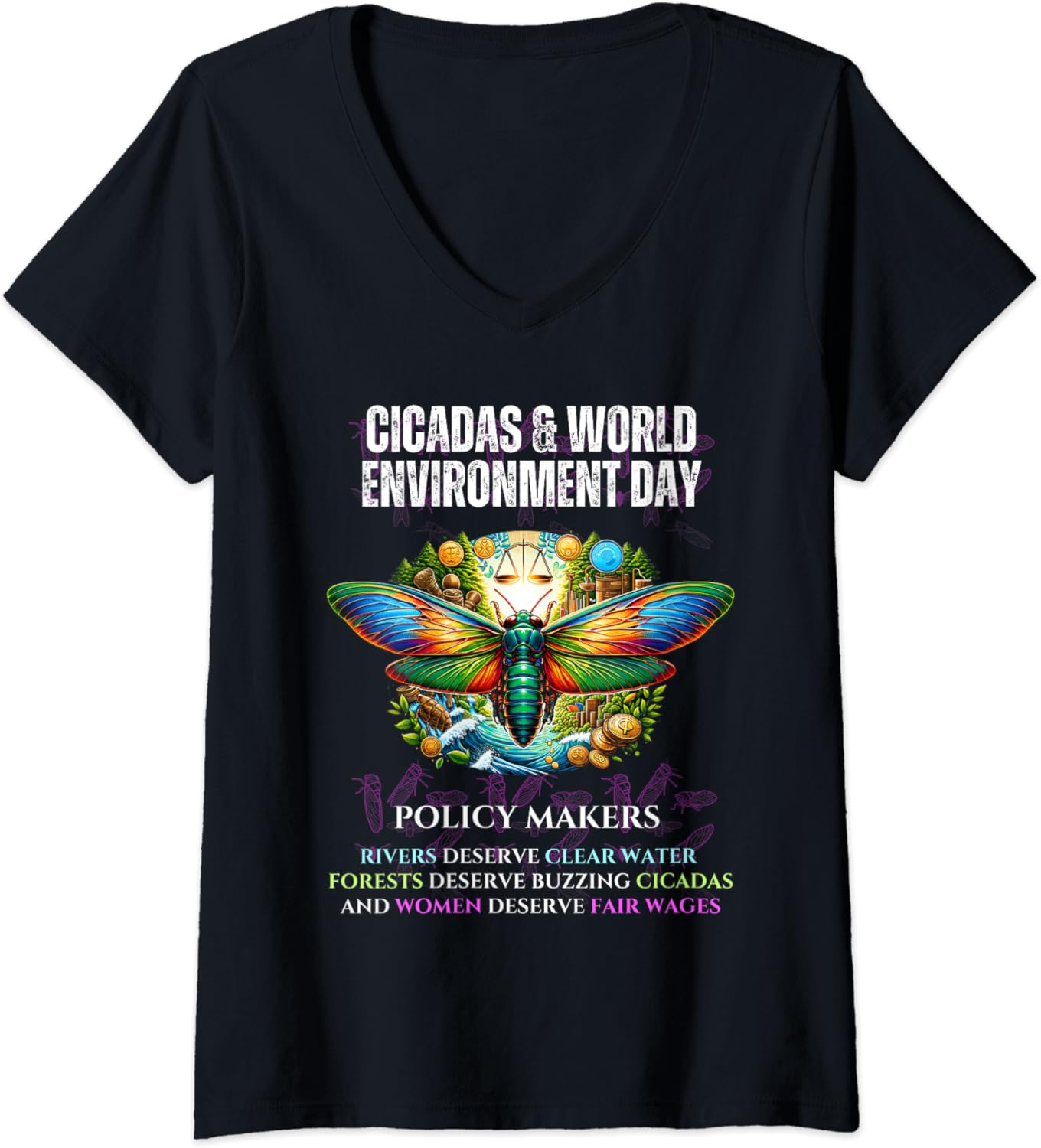 The Act on Climate Change Candidate Design is a call to action for political leaders and voters alike. Featuring the compelling quote, ‘Election Candidates, Rivers deserve clear water, forests deserve buzzing cicadas, and women deserve fair wages,’ this design underscores the importance of genuine political commitment to environmental issues. Ideal for activists, concerned citizens, and anyone passionate about sustainability, this design serves as a reminder that real change requires action, not just words. Display it at rallies, protests, or in your daily life to advocate for strong environmental policies and inspire others to demand accountability from their leaders. Join the fight for a sustainable future, emphasizing the need for policies and addressing grievances for climate change progress. This design also celebrates the role of cicadas in maintaining healthy ecosystems, supporting biodiversity, and enriching the environment.