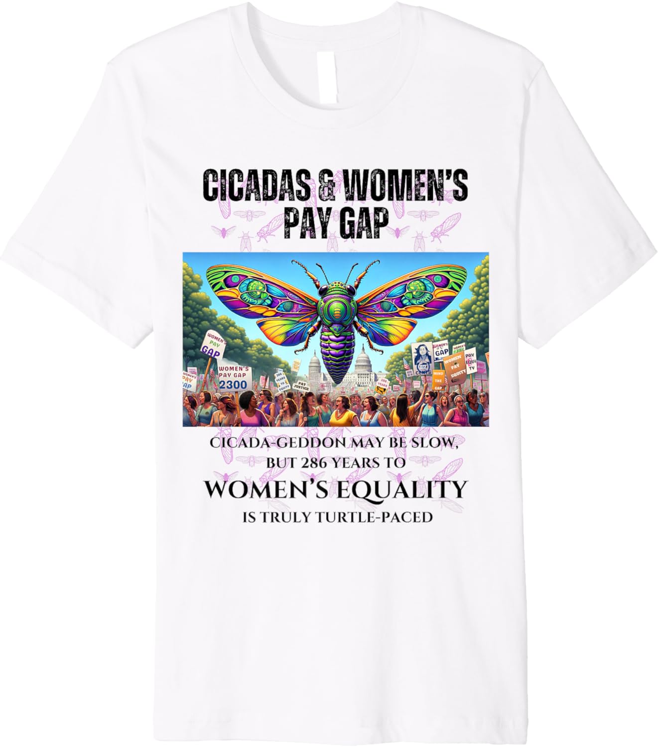 Stand up for women’s pay justice and economic equality with our Cicada Design Featuring striking and colorful cicada imagery, bringing attention to the persistent gender pay gap through a powerful quote. Despite making up nearly half the workforce, women still earn significantly less than men, with the gap widening for women of color. This design is a bold statement at any rally, event, or everyday , calling for action to close the wage gap. Women hold only 8.2% of Fortune 500 CEO roles, highlighting the need for continued advocacy and support for women empowerment and gender equality. International women’s organizations predict it will take more than 286 years to achieve economic equality for women. Show your support for women’s rights, empower women, and help amplify the message that the time for change is now.