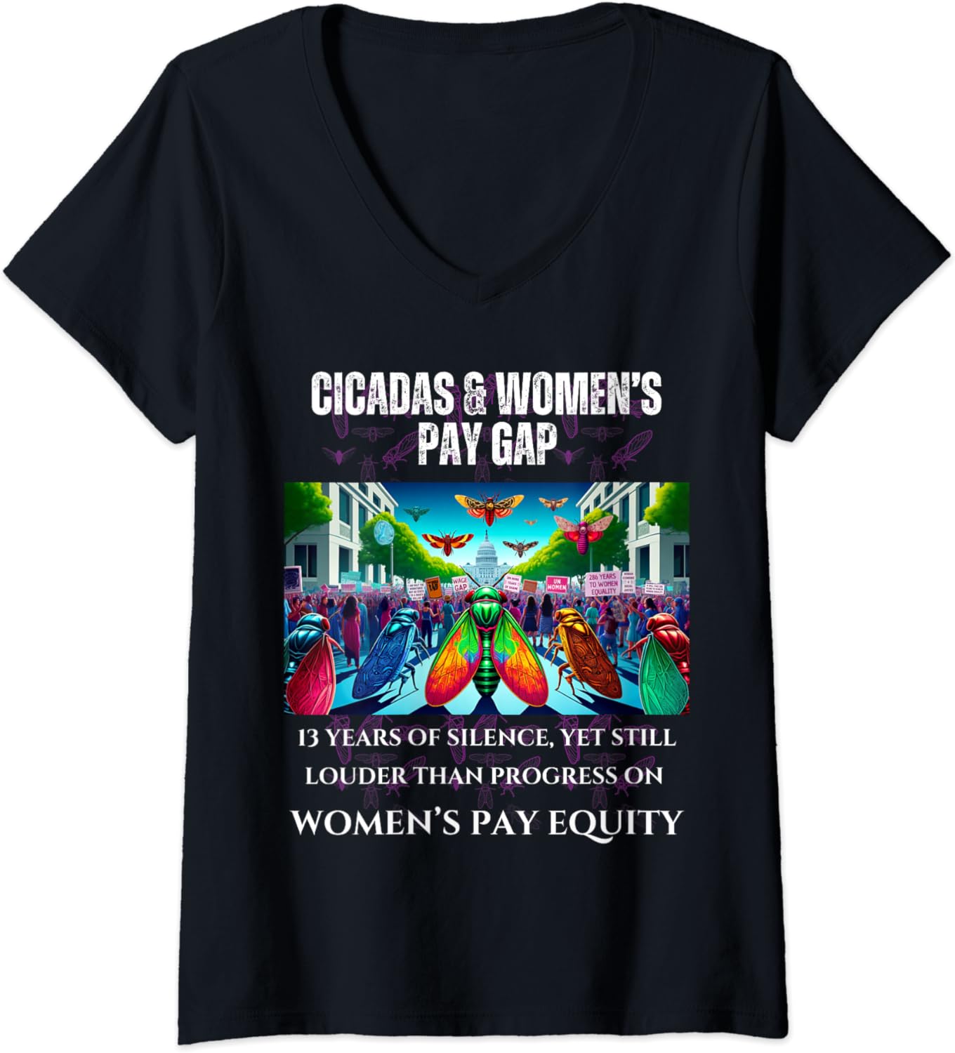 Cicadas : 13 Years Silent, Pay Equity Still Lagging – Dark V-Neck T-Shirt