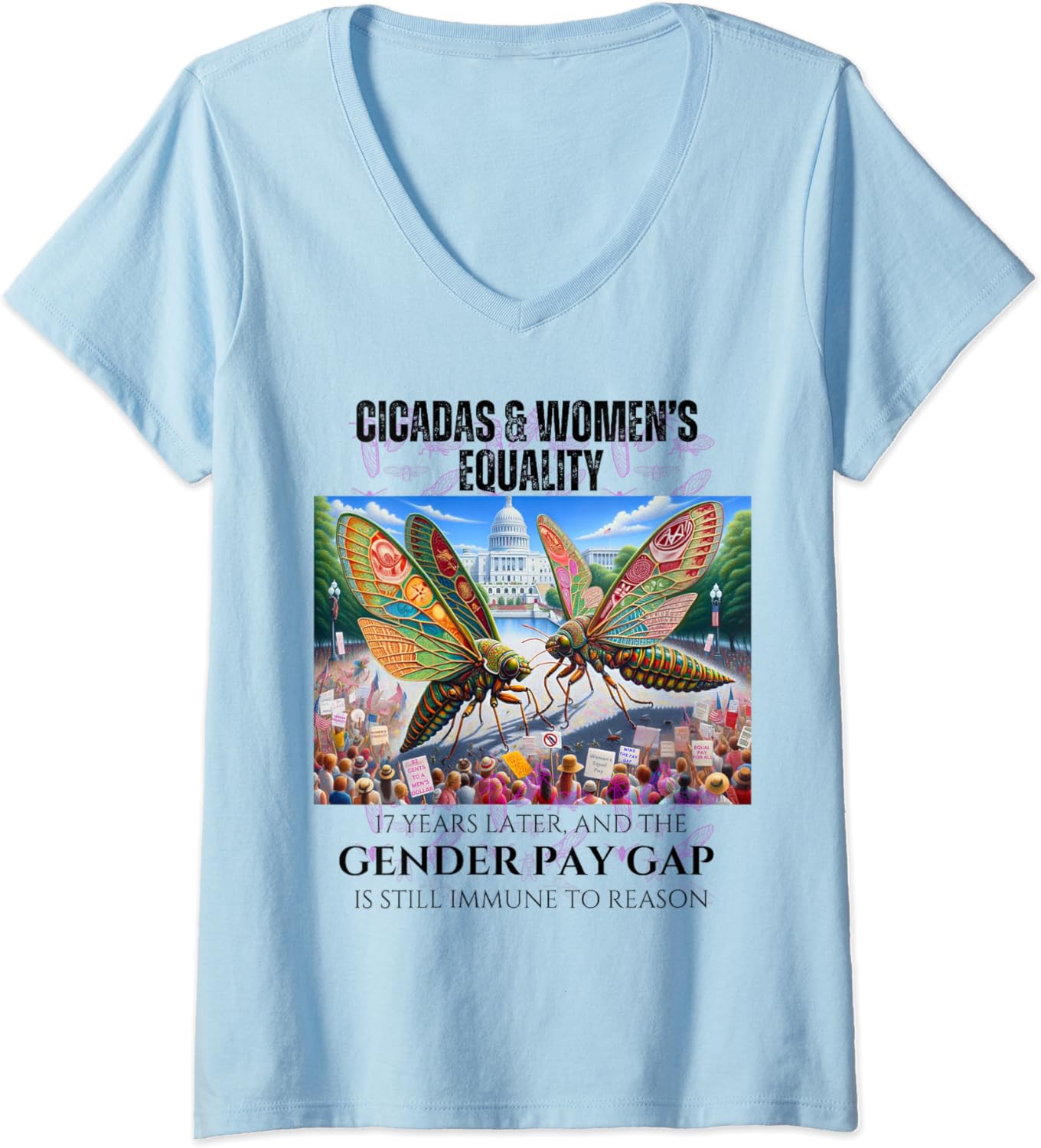 Cicadas : 17 Years Later, Pay Gap Remains V-Neck T-Shirt