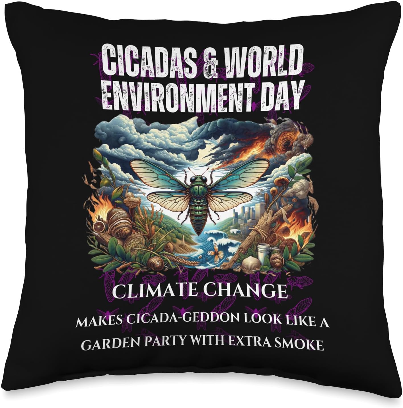 Cicadas raising Climate Change awareness-DARK Throw Pillow