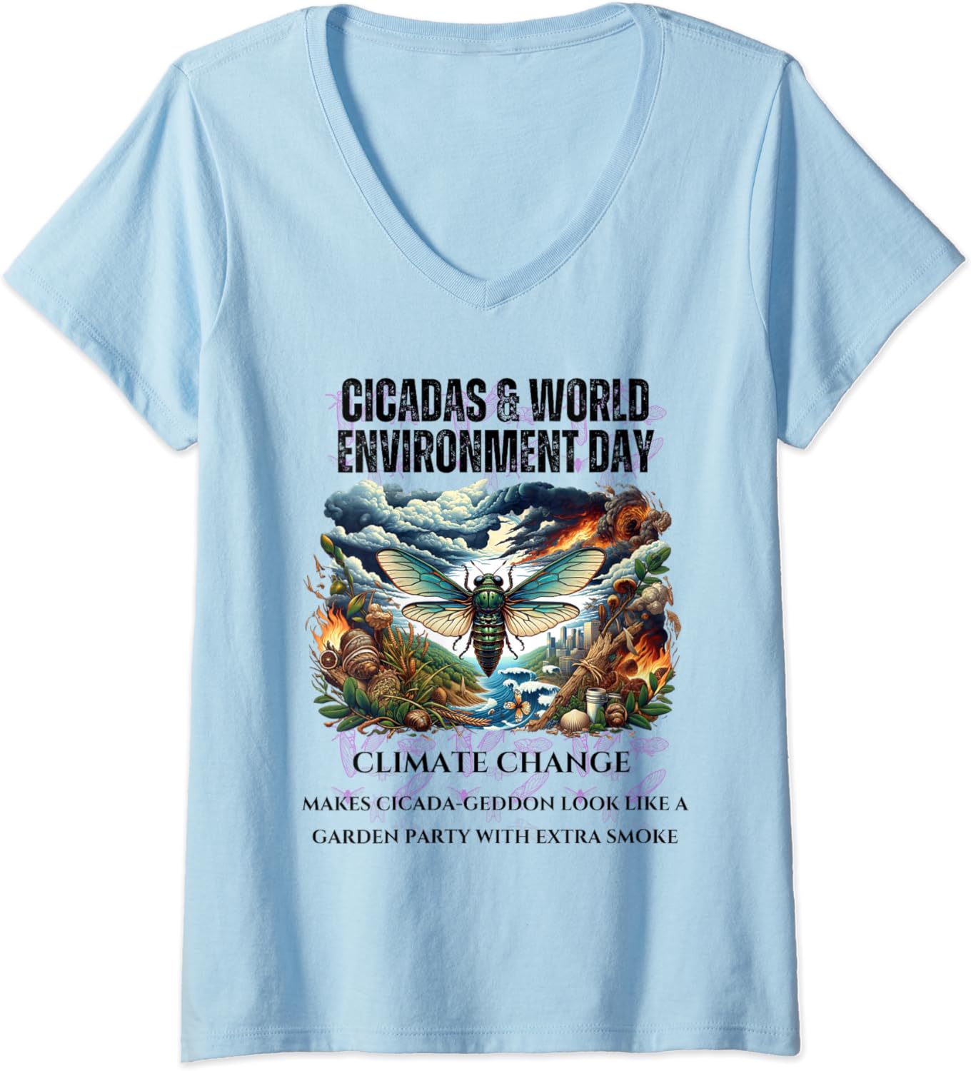 Cicadas raising Climate Change awareness-LIGHT V-Neck T-Shirt