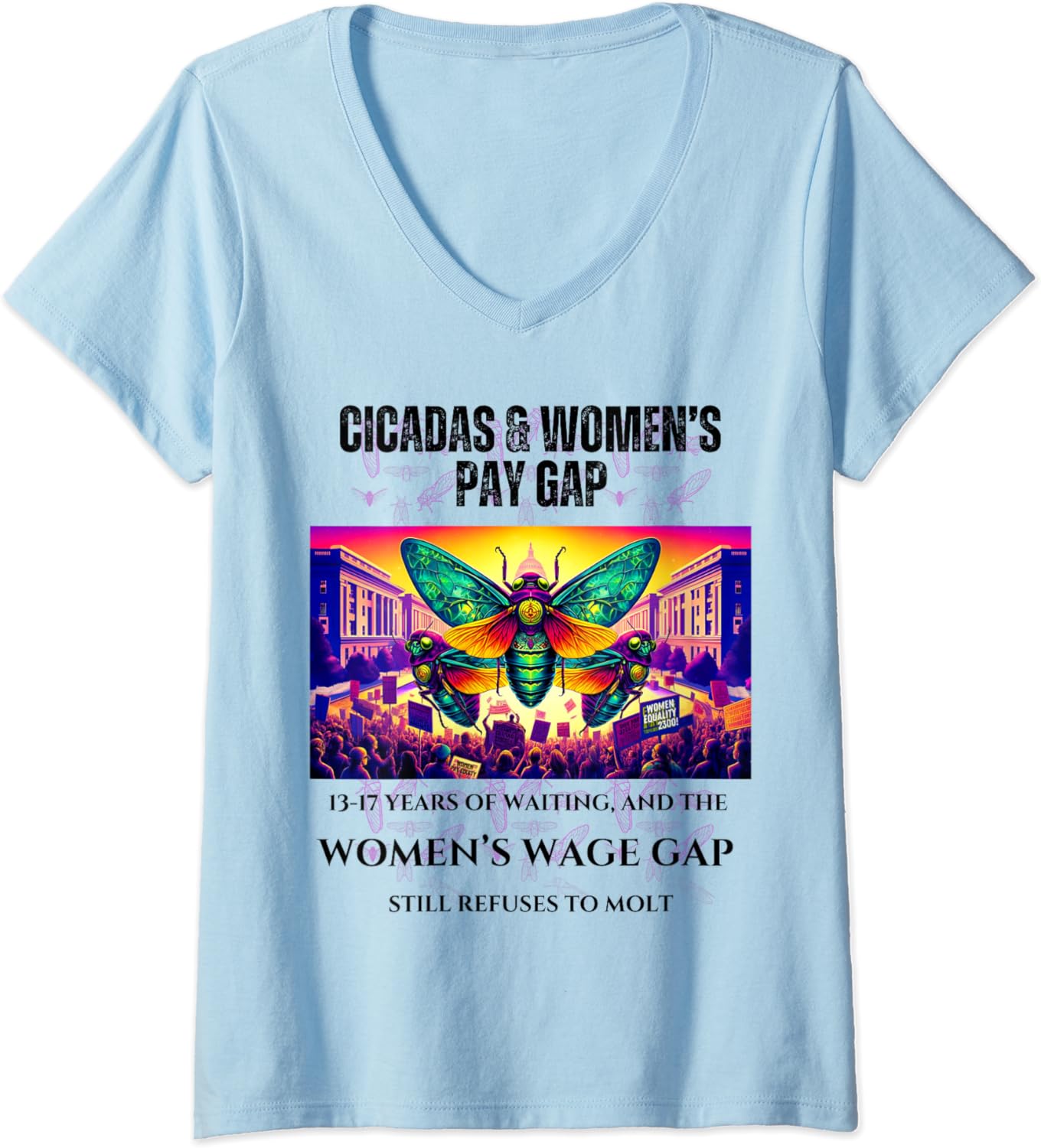 Cicadas Waiting Years, Wage Gap Unmoved V-Neck T-Shirt