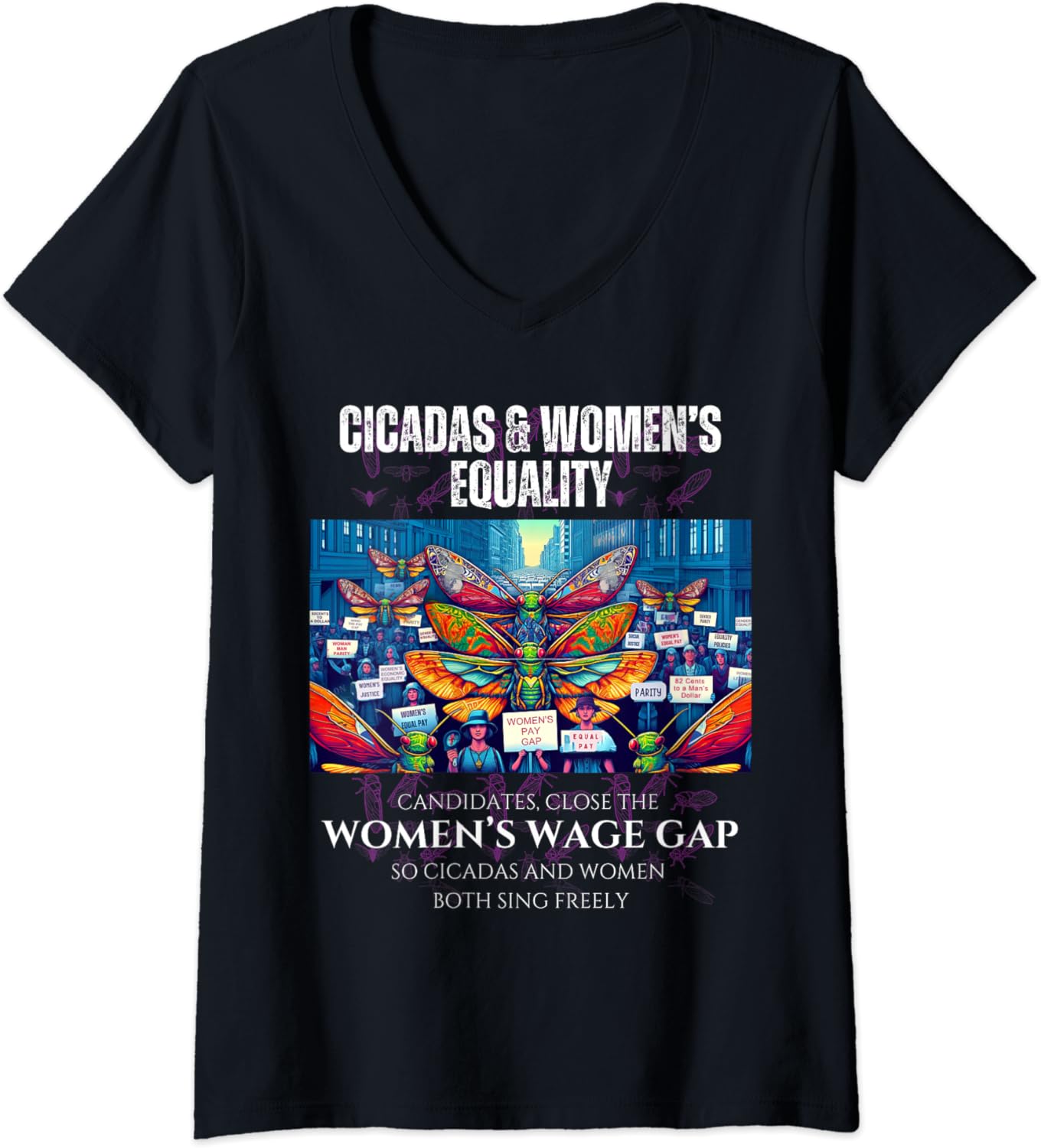 Close the Wage Gap, Cicadas and Women Sing V-Neck T-Shirt